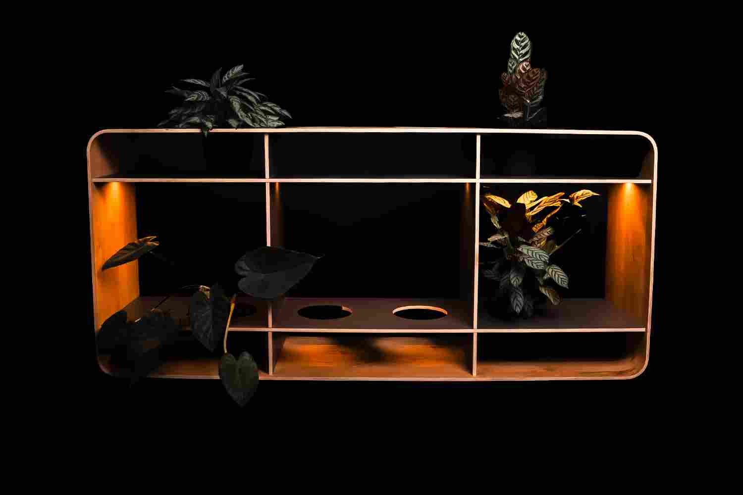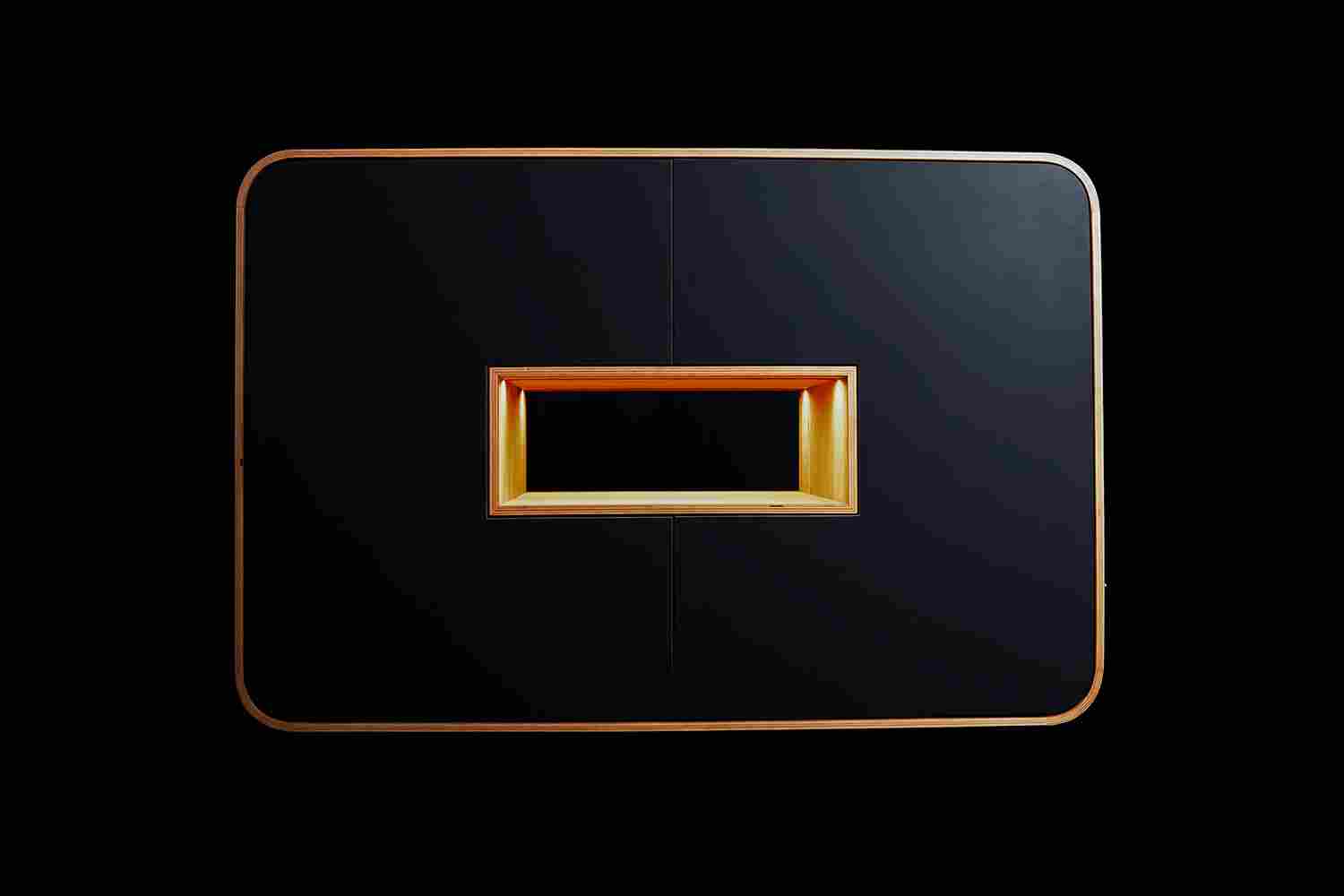 Sanft gerundeter Holzrahmen, tiefmatte Flächen und integrierte Beleuchtung setzen jedes Detail perfekt in Szene – geschaffen für Menschen, die das Besondere schätzen.