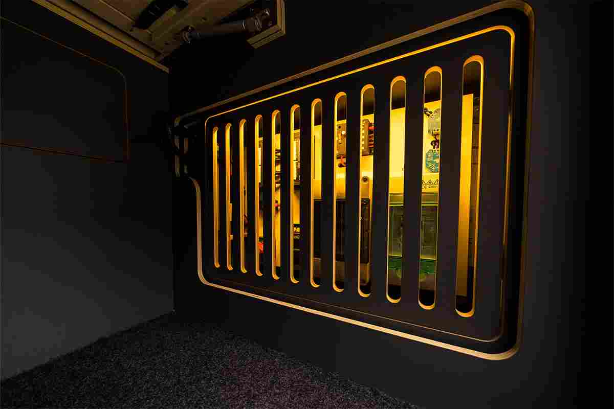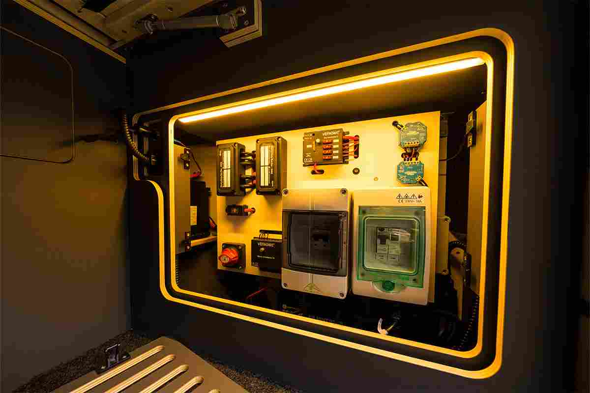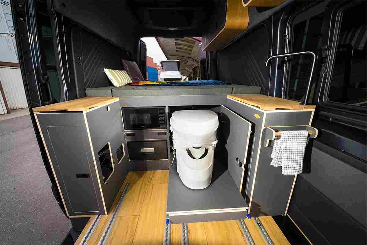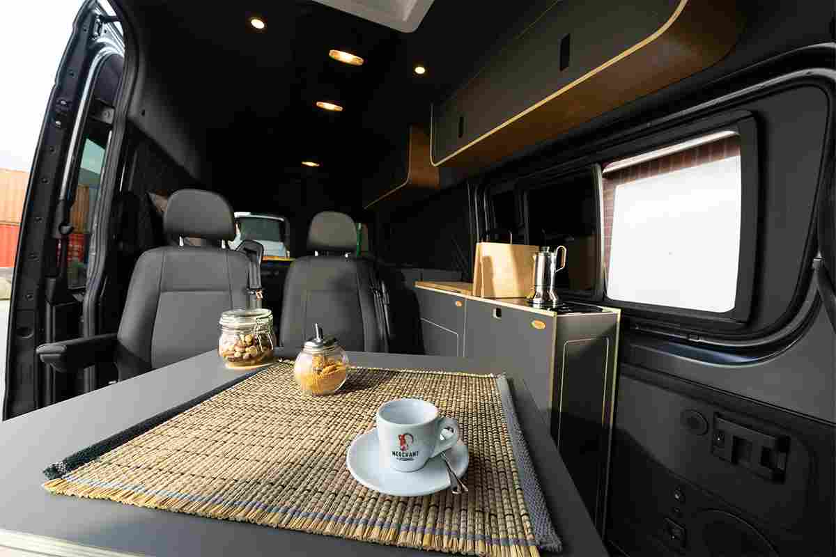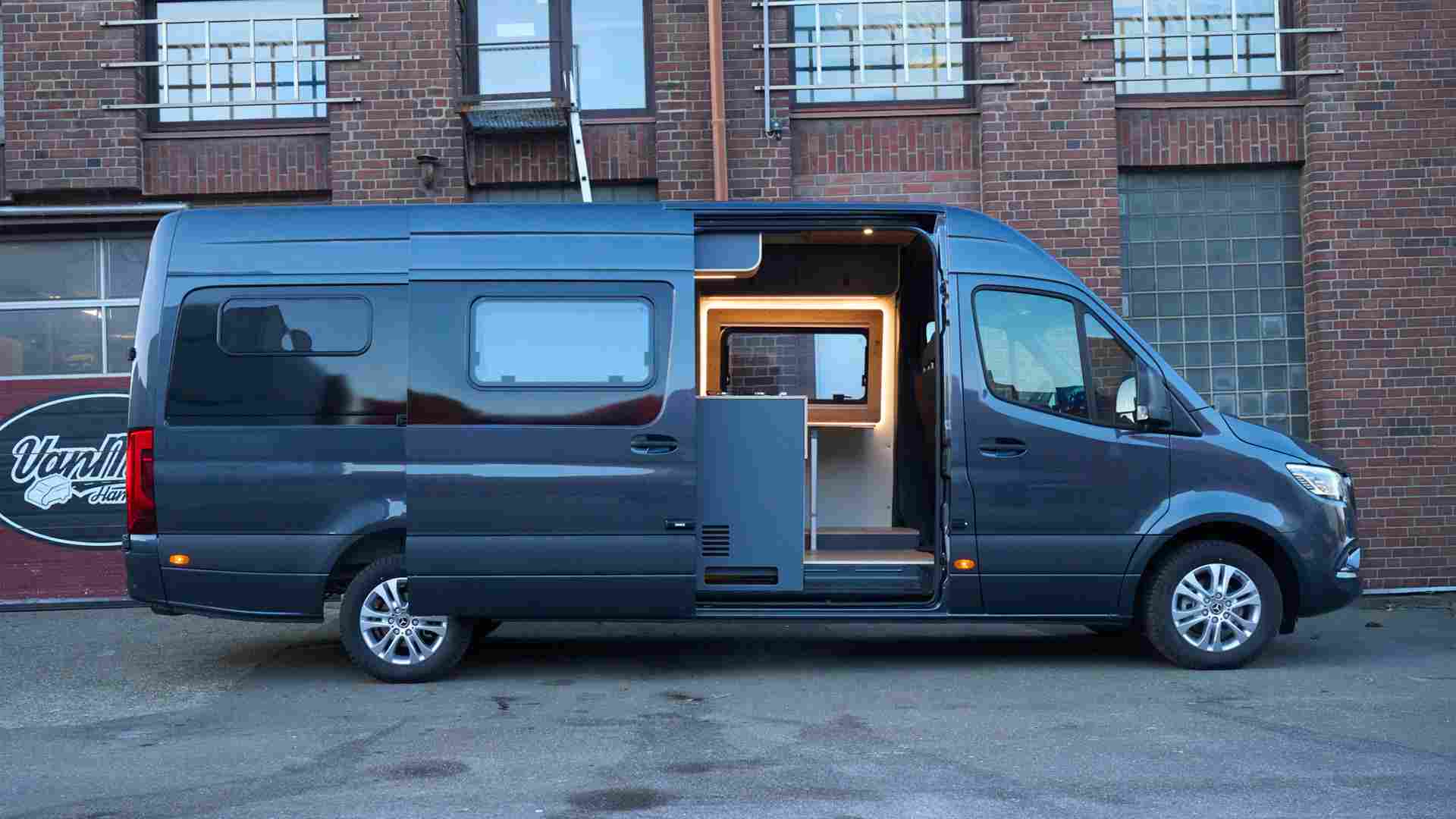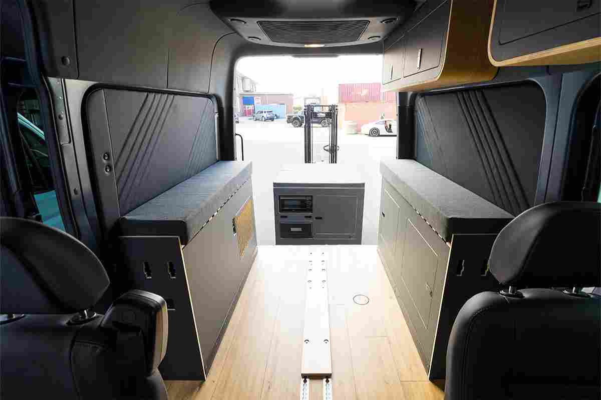 Der Ausbau integriert sich in die vorhandene Ausstattung von Mercedes Benz.