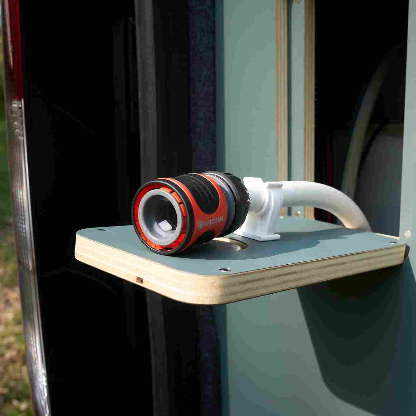 Vier hydraulische Hubstützen heben das Fahrzeug an und nivellieren es aus
