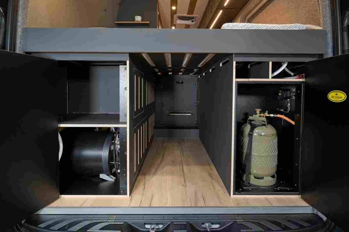 Die Basis bildet ein Mercedes-Benz Sprinter mit 3,88 Tonnen Gesamtgewicht, zuschaltbarem Allradantrieb, 7 Metern Länge und einer Höhe von 2 Metern – ein Fahrzeug, das Kraft, Raum und Eleganz vereint.