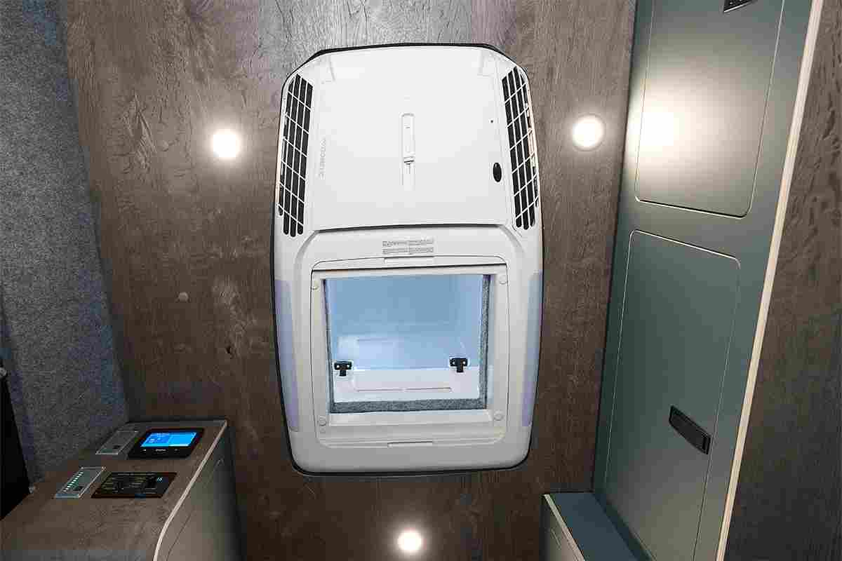 Im Inneren erwartet die Fahrer ein Raumkonzept, das auf die Bedürfnisse von Spediteuren und Vielfahrern zugeschnitten ist: ein großes Bett für erholsamen Schlaf, ein Kleiderschrank für knitterfreie Hemden und ein Entertainment-System, das nach langen Fahrten für Entspannung sorgt.