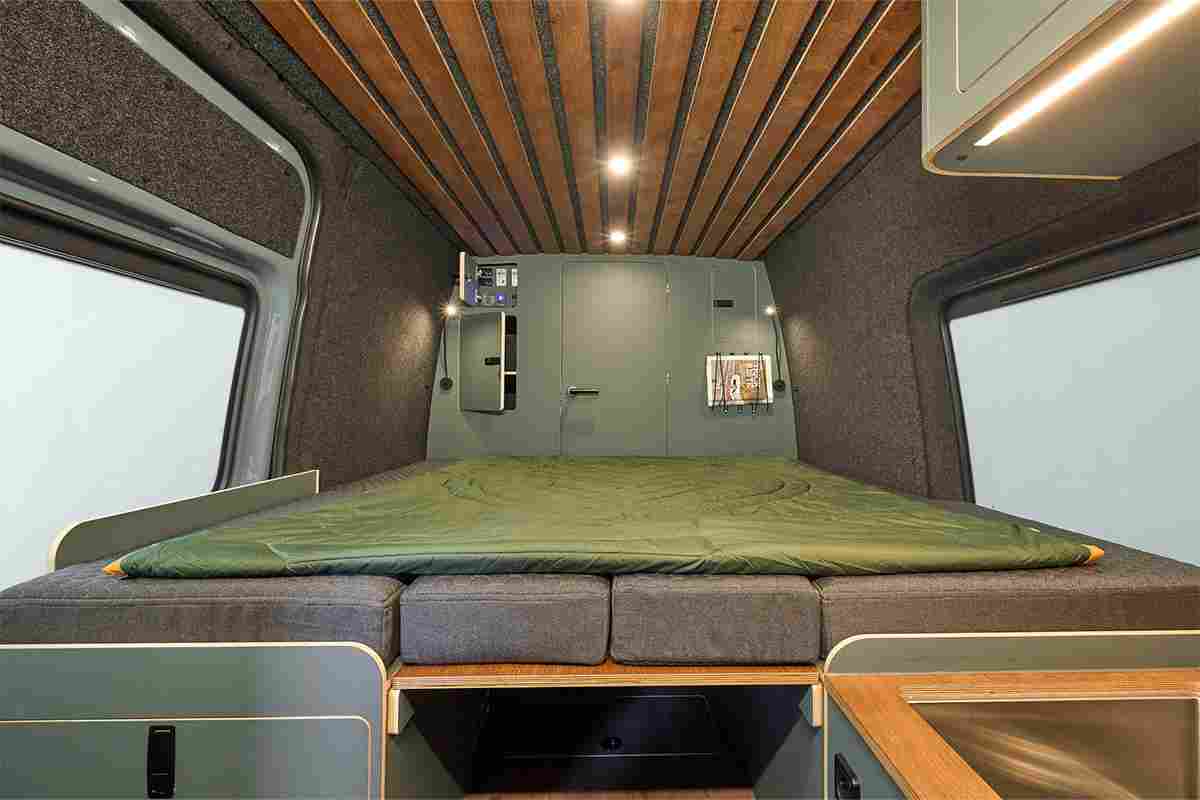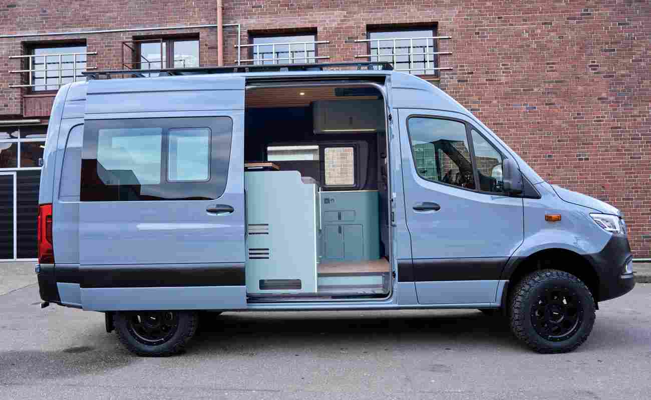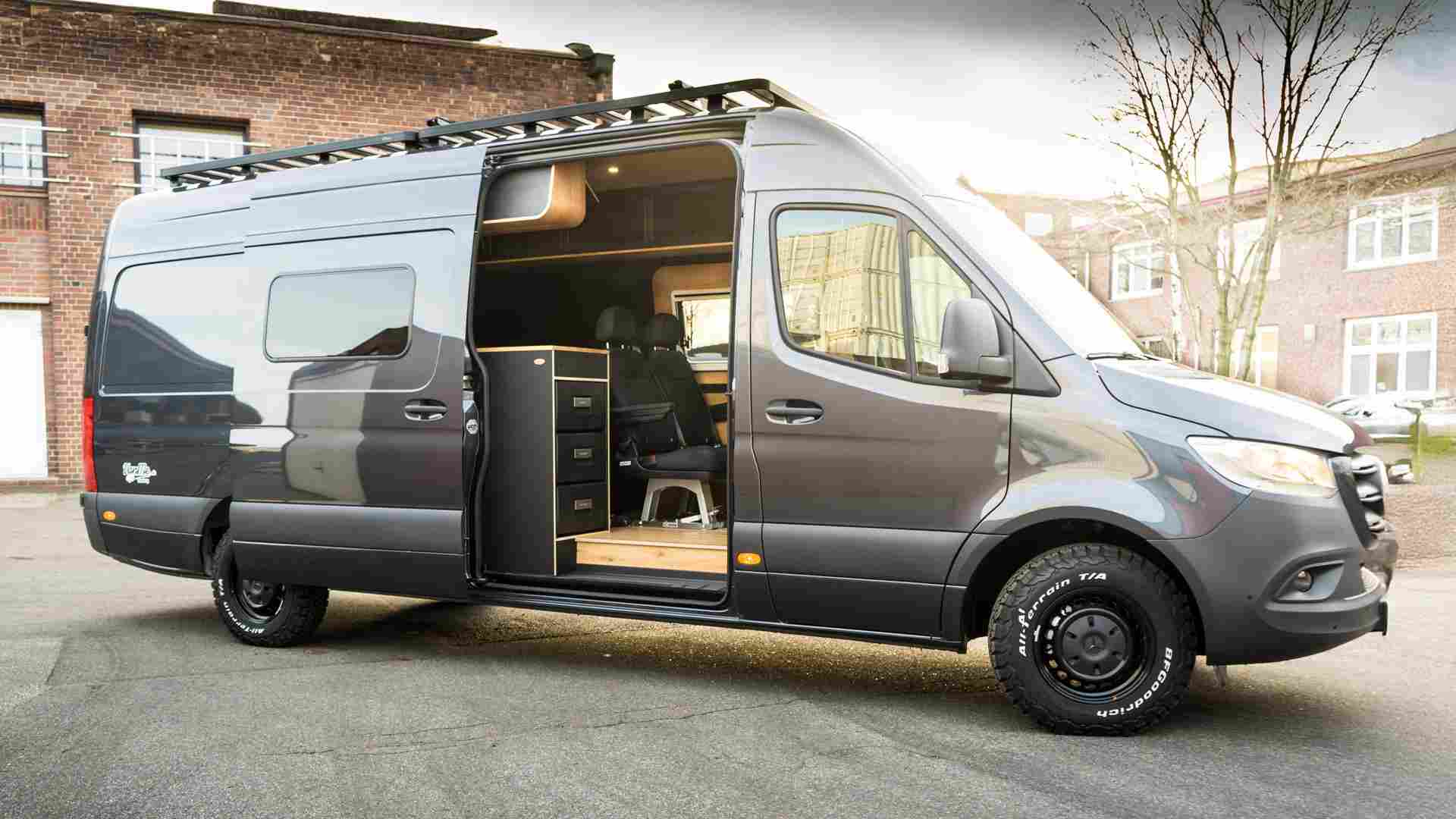 Auf Basis eines Mercedes-Benz Sprinter mit zuschaltbarem Allradantrieb und einer Gesamtlänge von 6 Metern entstand ein Ausbau, der durch intelligente Raumplanung und handwerkliche Raffinesse beeindruckt.