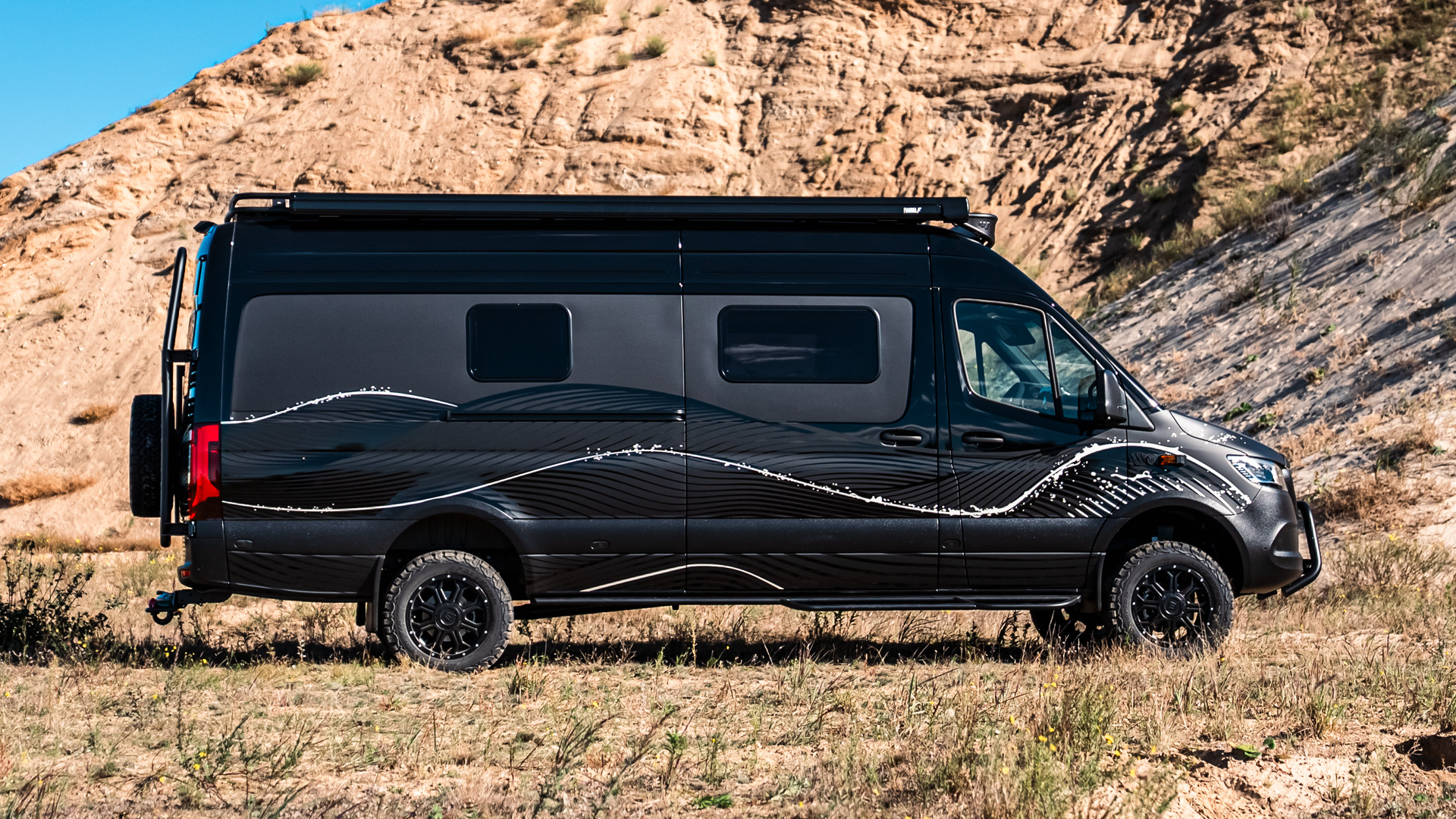From the outside, La Onda consistently continues its design concept: a foil wrap in a wave motif, a fully equipped off-road look and the VANME Signature Rims make it a real eye-catcher – powerful, classy and unmistakable.