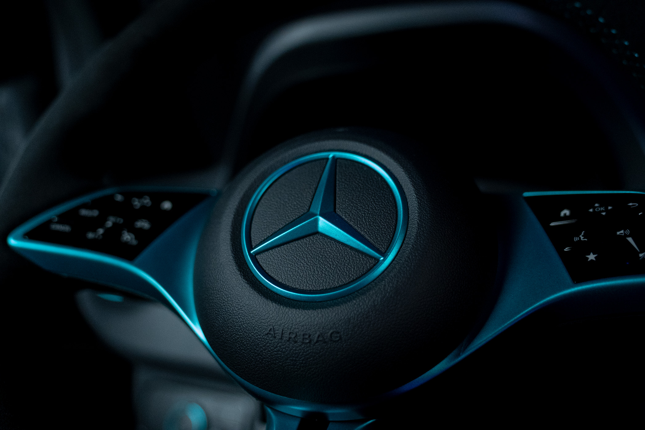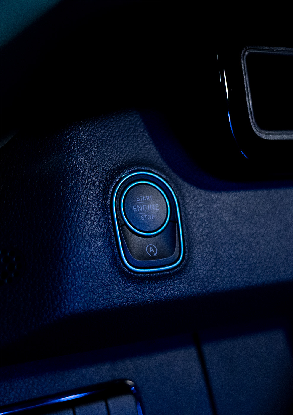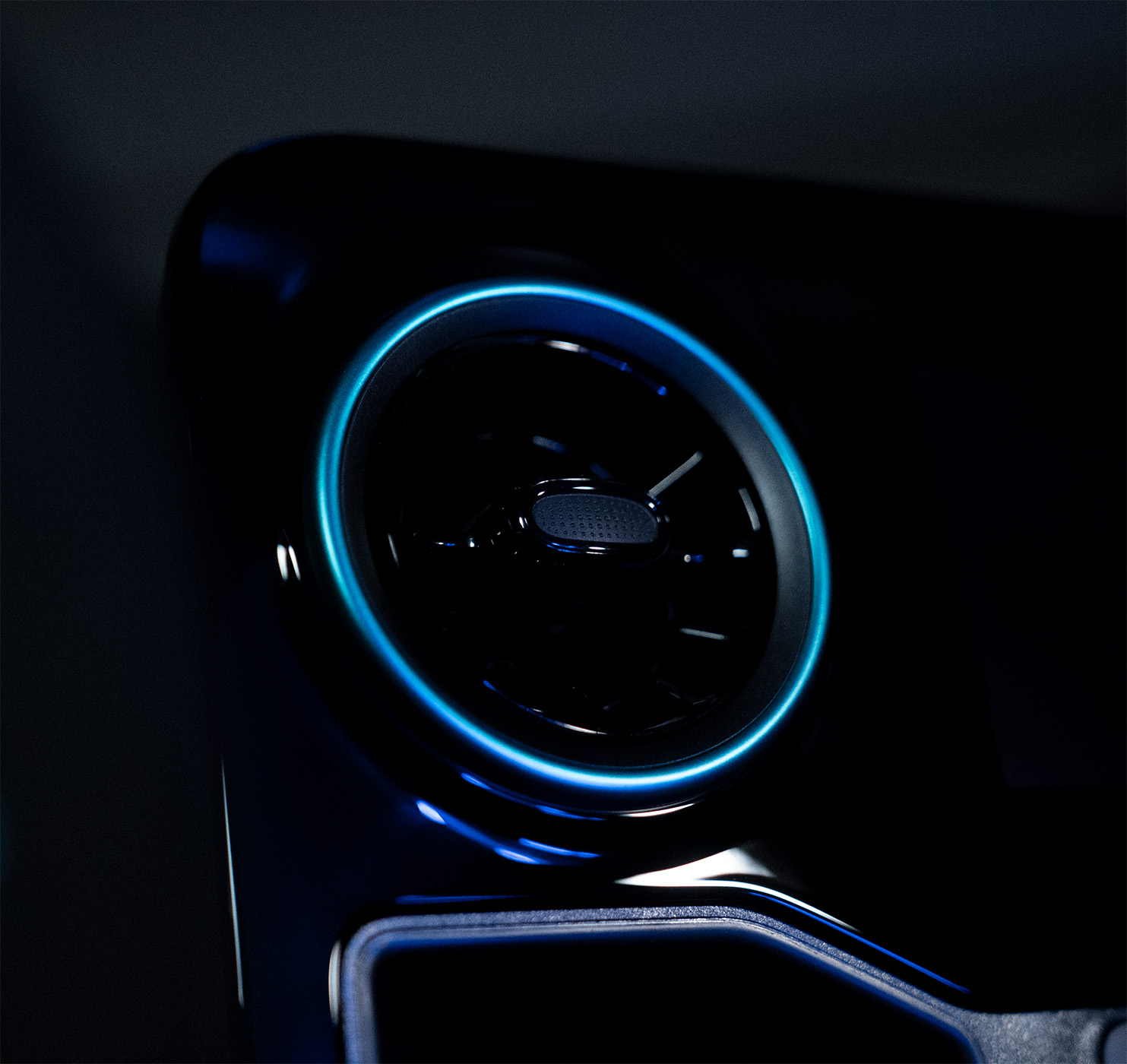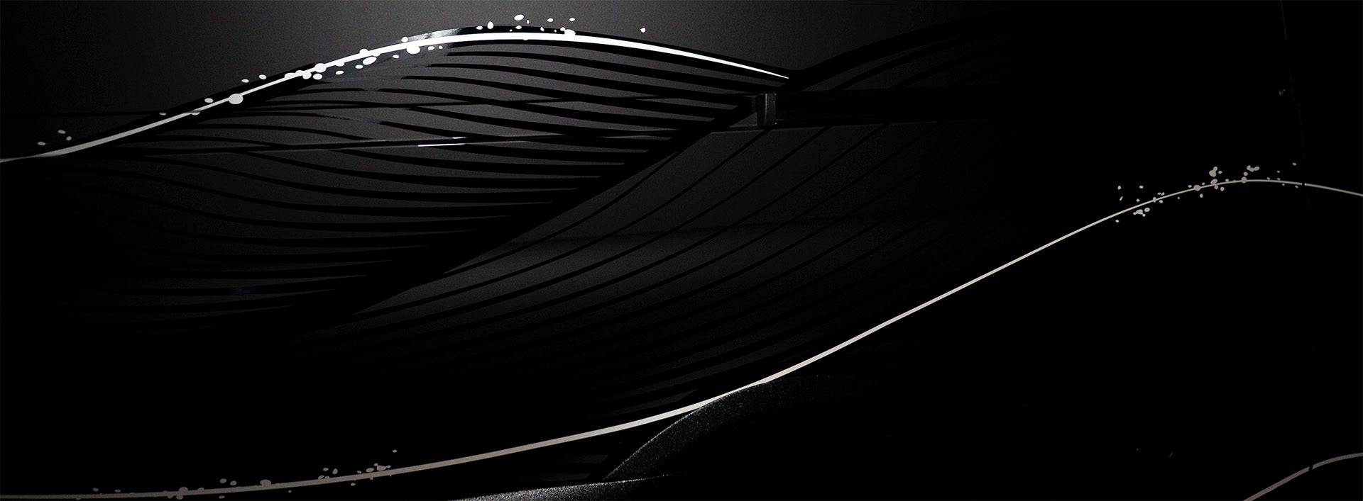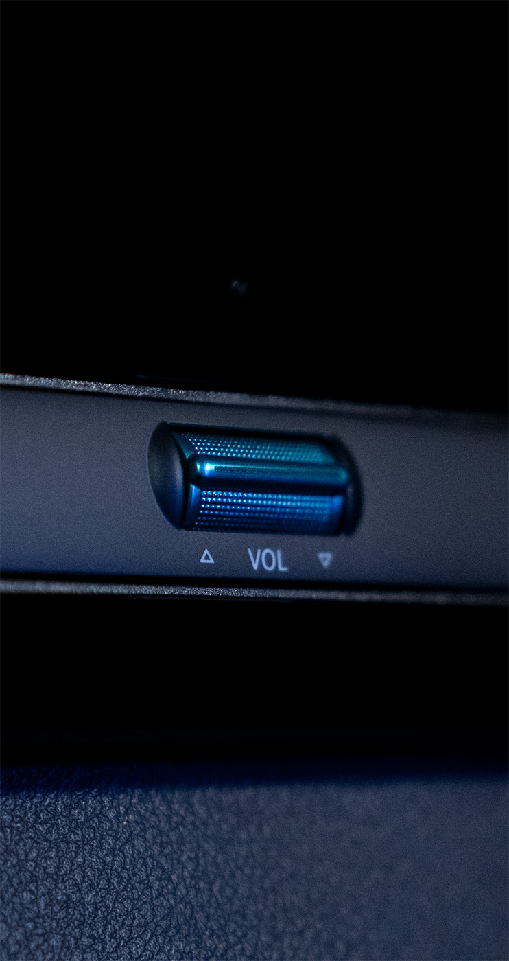At the customer’s request, this design concept was continued down to the last detail: The mobile table picks up on the wave motif – with incorporated black lines and integrated LED lighting that continues the movement of the light. The cockpit was also refined in the wave design, covered with fine Alcantara and enhanced with glazed aluminum elements that shimmer discreetly and elegantly complement the design language.