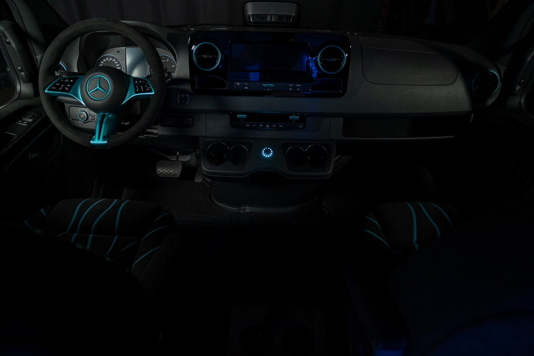 La Onda also makes a statement on the outside: a wave wrap that symbolizes movement, VANME signature rims, an integrated sound system with exciters throughout the vehicle, a projector and screen – every detail is a testament to technical sophistication and visionary design.
