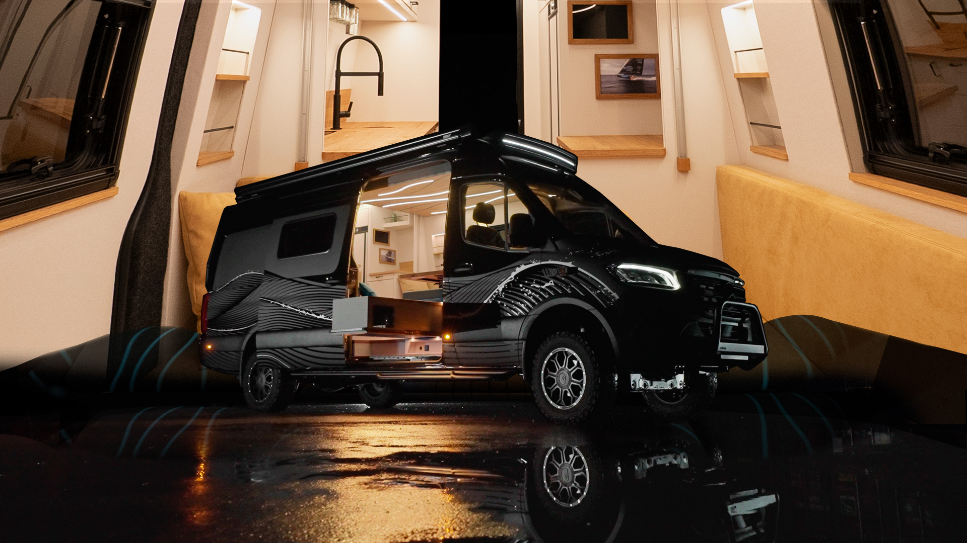 Built on the basis of a Mercedes-Benz Sprinter L3H2 with all-wheel drive, this vehicle stands for what is created when craftsmanship, design and technology merge into a single unit – a mega yacht on four wheels.