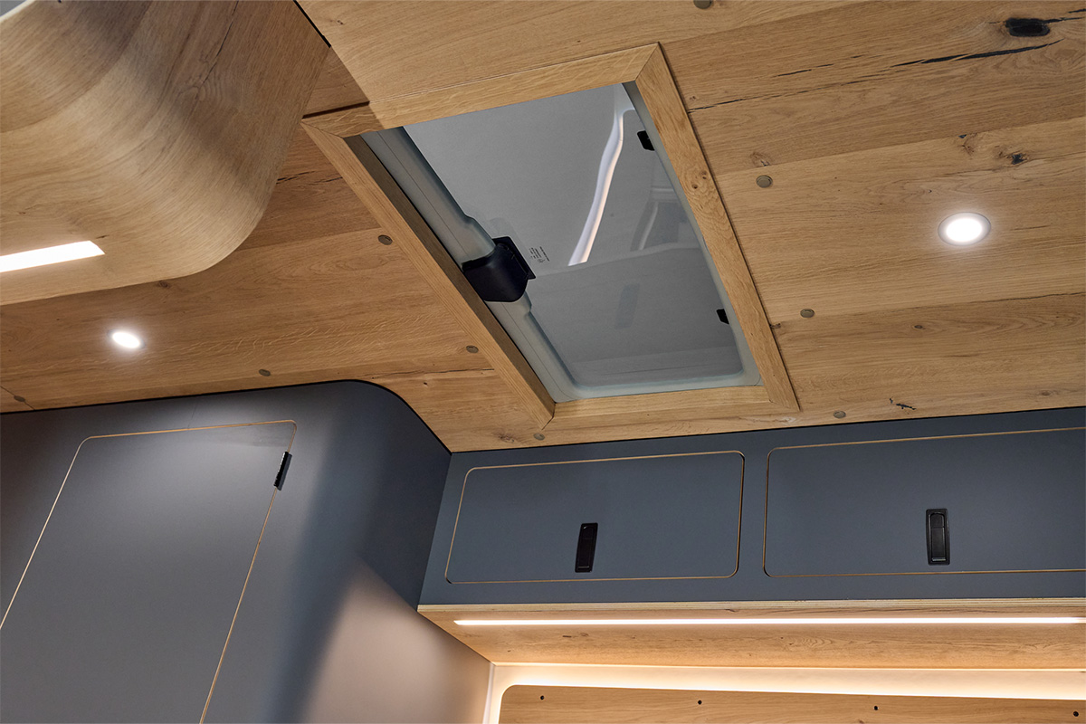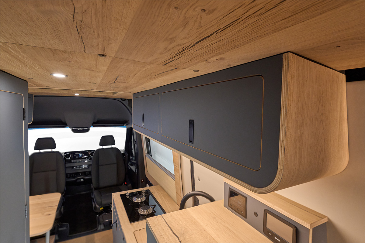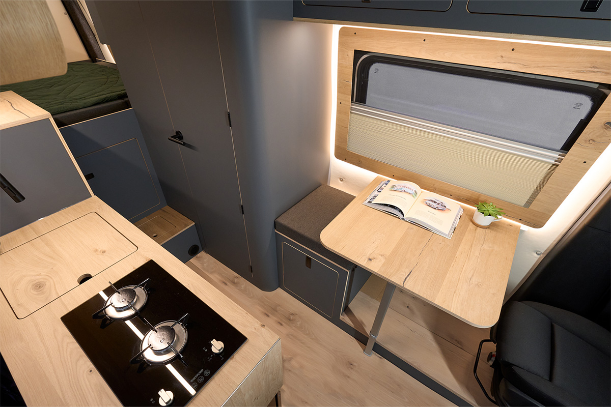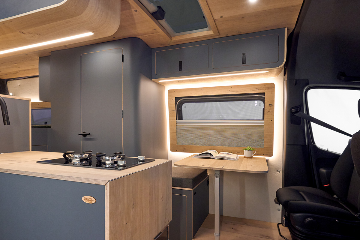 Des matériaux sélectionnés par l’industrie du camping-car ont été utilisés pour l’aménagement.