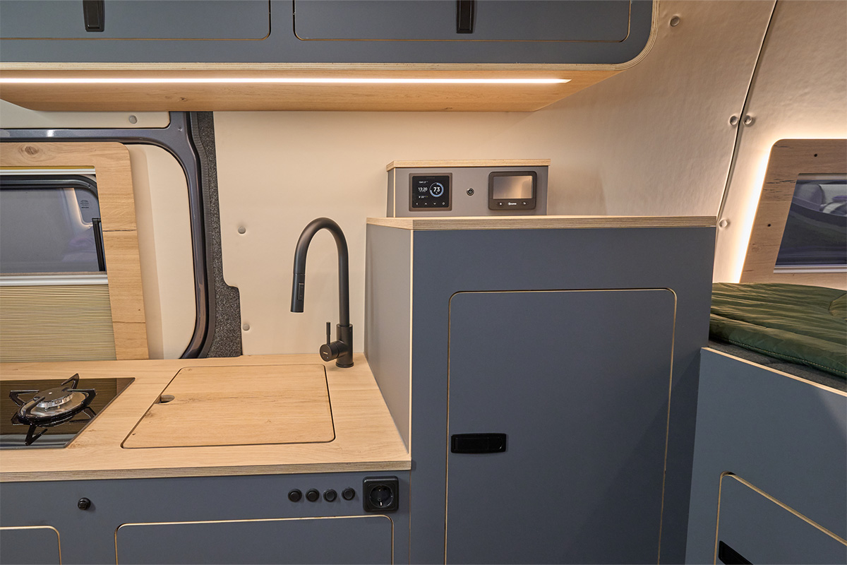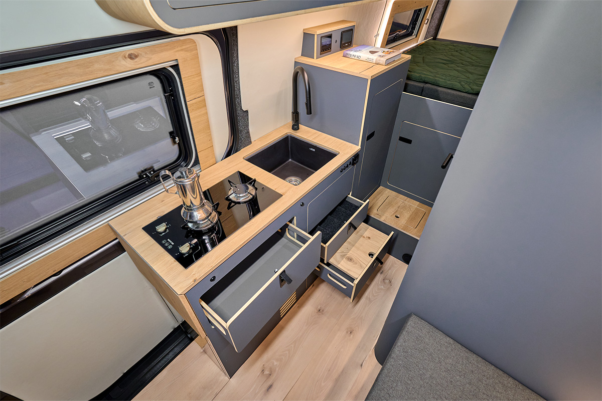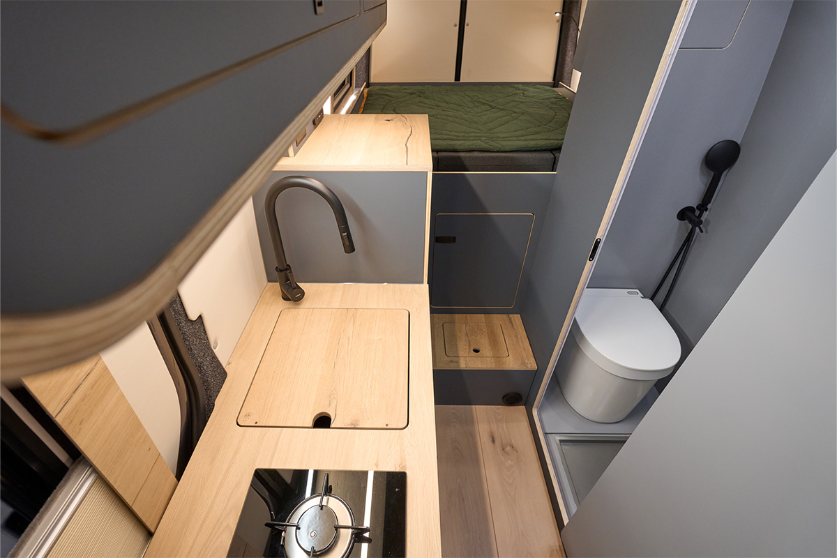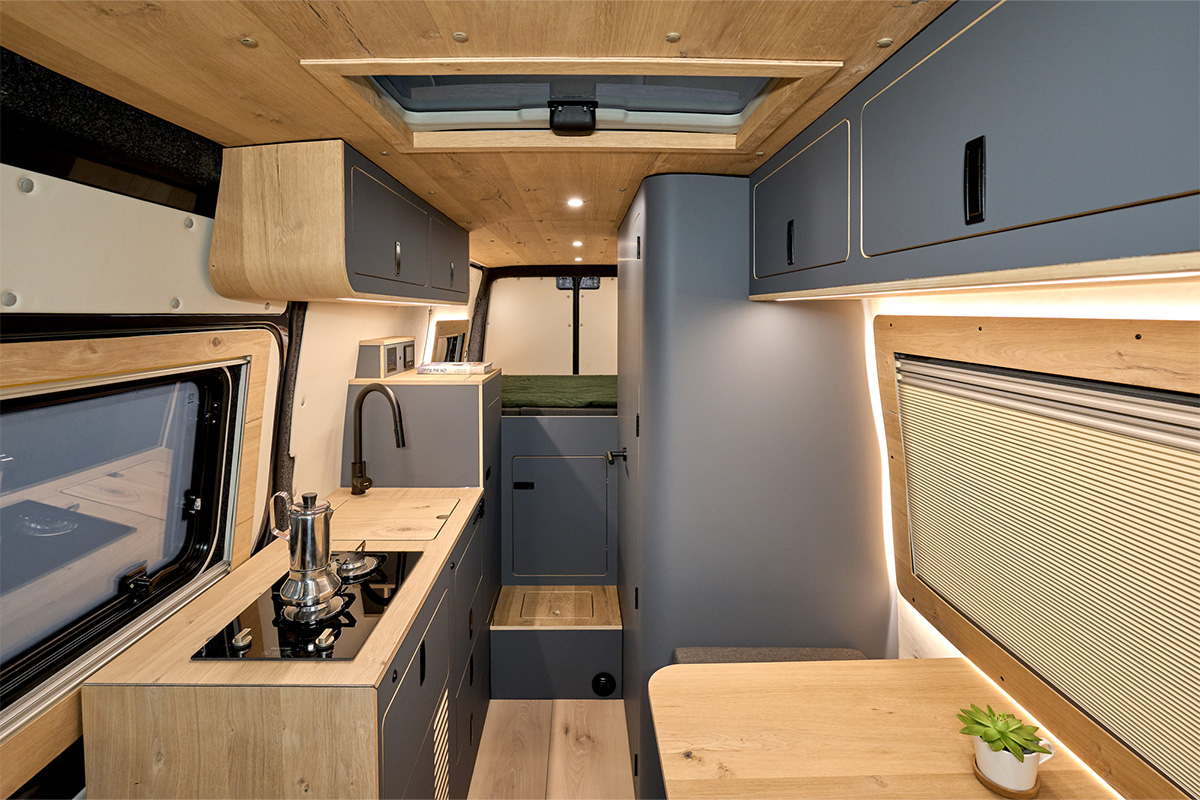 Des matériaux sélectionnés par l’industrie du camping-car ont été utilisés pour l’aménagement.
