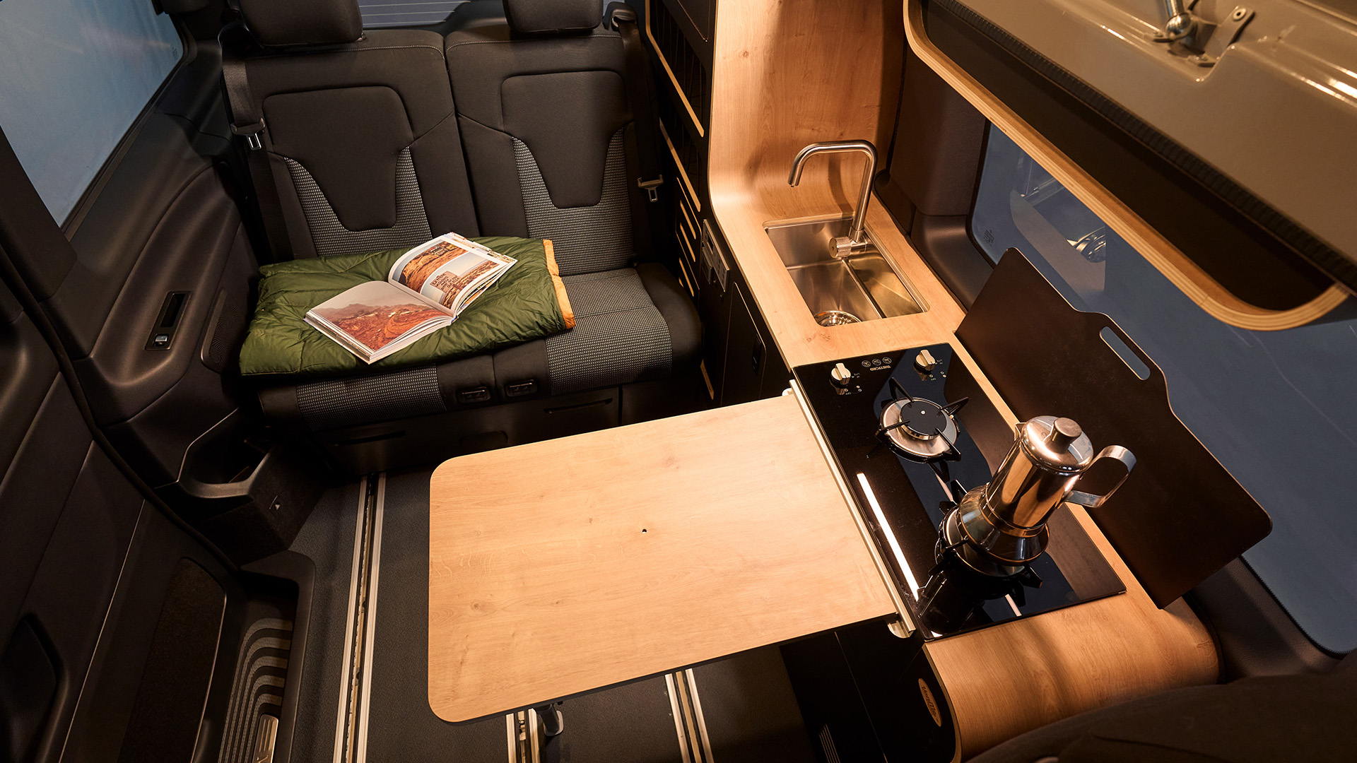 De nombreuses caractéristiques originales de Mercedes-Benz ont été délibérément conservées afin de préserver le caractère haut de gamme de l’EQV. Dans le même temps, le savoir-faire de VANME transforme le véhicule en un véritable camping-car - fonctionnel, confortable et à l’esthétique distinctive.