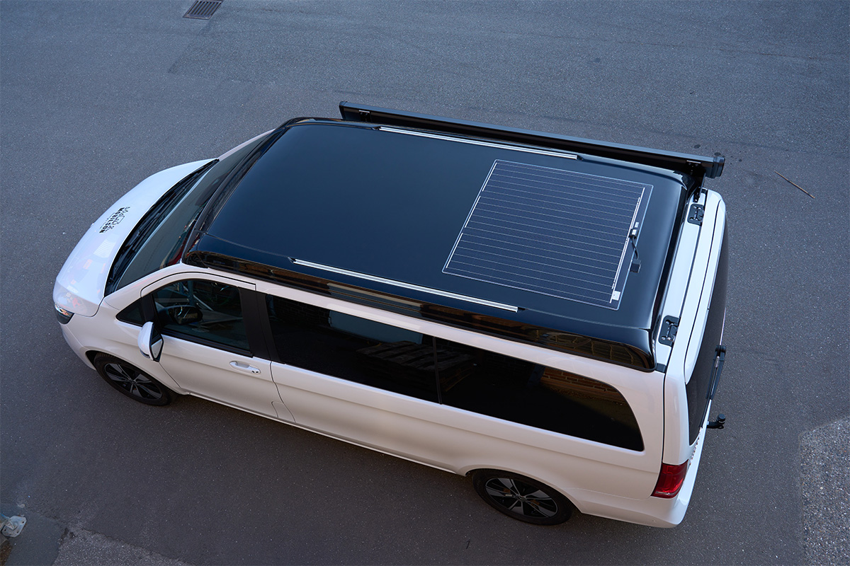 Les meubles sont en contreplaqué de peuplier européen, le revêtement de sol est en vinyle bio - sans chlore ni solvants, fabriqué avec des charges naturelles. Le concept est complété par un système d’énergie solaire qui fournit de l’énergie supplémentaire - pour plus de liberté, de responsabilité et d’avenir en voyage.