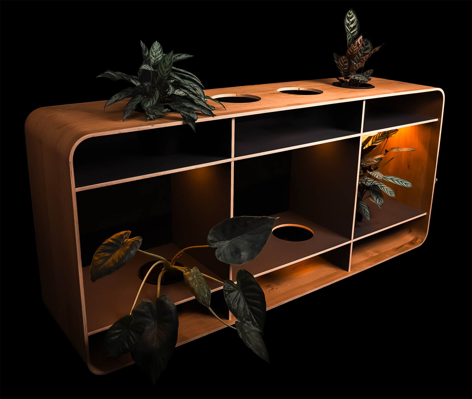 Gli scomparti, chiaramente organizzati, creano spazio per piante, oggetti o libri e permettono a ogni dettaglio di risaltare grazie al gioco di luci e materiali. Ogni pezzo è la prova di un’autentica maestria artigianale: realizzato con cura, dal carattere unico, creato per persone che apprezzano qualcosa di speciale.