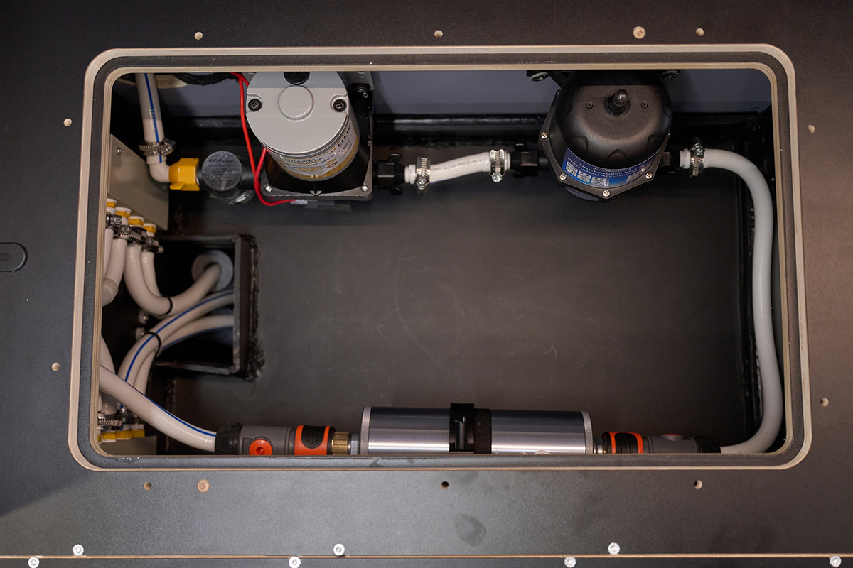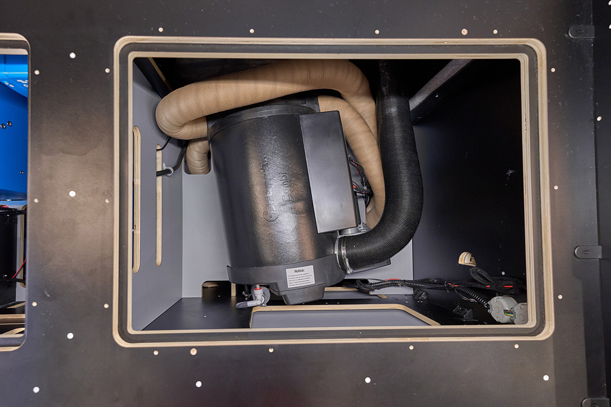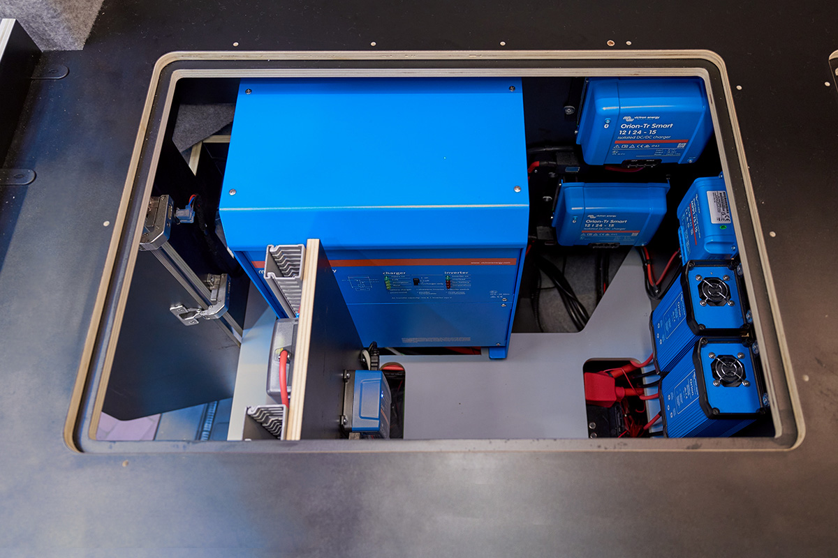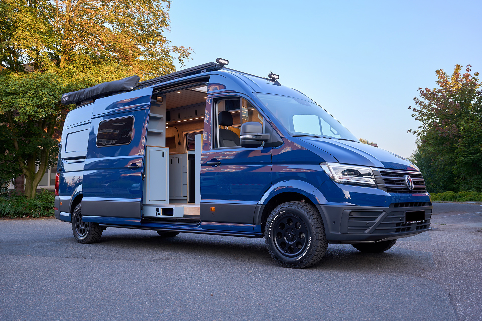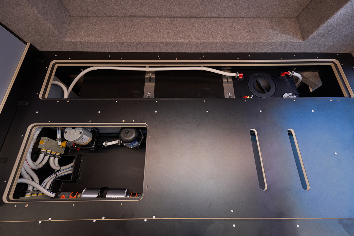 La base: una Volkswagen Crafter lunga 6,80 metri con trazione integrale. Su questa base è stato creato un concetto di spazio completamente nuovo che si concentra senza compromessi sulla chiarezza e sul comfort. Le zone giorno e notte sono volutamente separate l’una dall’altra, mentre la cucina e il bagno si trovano al centro del veicolo. Ciò significa che il flusso dei movimenti è perfettamente organizzato e che ogni area può essere vissuta con i propri tempi: il massimo del relax in uno spazio ridotto.
